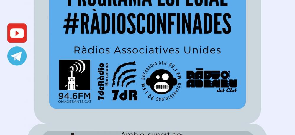 4 ràdios associatives de la ciutat estan unint esforços per explicar el confinament dels nostres barris. Per això el passat 13 d’abril es va fer un programa especial que podeu recuperar en aquest enllaç. Trobareu debats, entrevistes, música en directe i humor.
